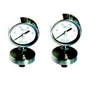 原理:膜片式壓力表是膜片作為儀表的強性元件,當被測介質的壓力作用到膜片上,膜片產生一個位移,再經過機芯部件,指針部件的工作,使要測的  壓力清楚地在刻度盤上指示出來。